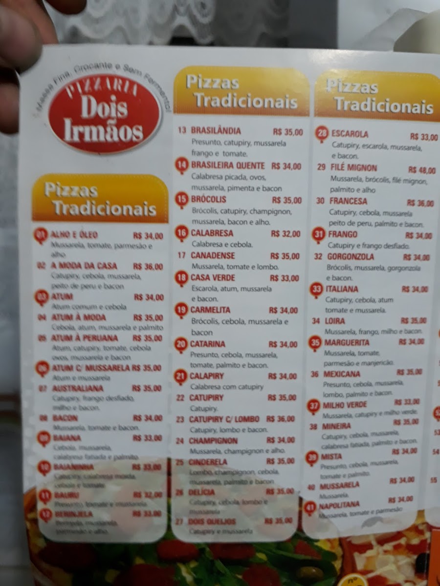 At Pizzaria Dois Irmãos Menu, you’ll find an irresistible selection of pizzas crafted with fresh ingredients and passion for great food. From traditional Margherita to inventive specialties, each dish is designed to satisfy your cravings. Their menu offers a variety of pizzas, including hearty meat options, delicious vegetarian combinations, and everything in between. The flavors are rich and the crusts are perfectly baked, giving you the ideal balance of crispy and soft. Whether you’re here for a casual meal or a celebration, there’s something for everyone. Pair your pizza with their tasty sides or refreshing drinks, and you’ll have a meal that’s truly enjoyable from start to finish.